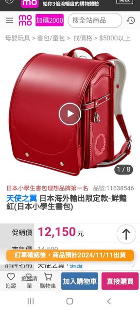 標題[交易] 出售日本原裝中古天使之翼小學生書包胭脂紅