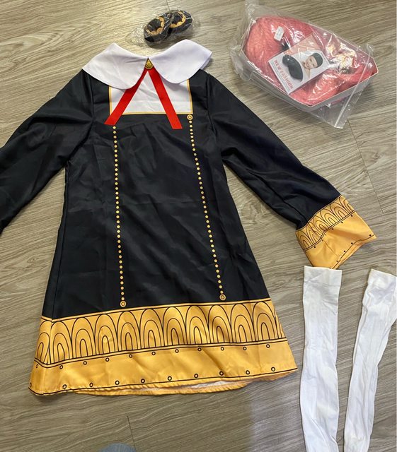 原本黑長襪不見,附上我自己搭上的黑色長襪,跟沒用過的迷之緞帶(看來是綁腿用,太