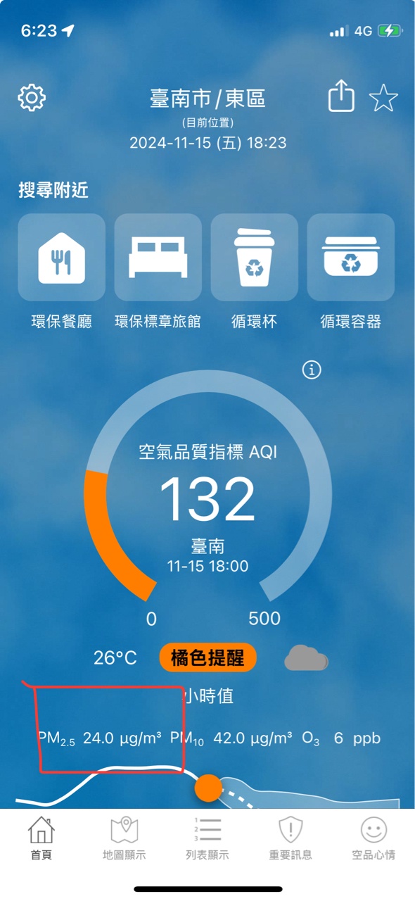 推 ncnu0119: 台南測站現在即時濃度已降至普通等級11/15 18:25