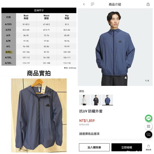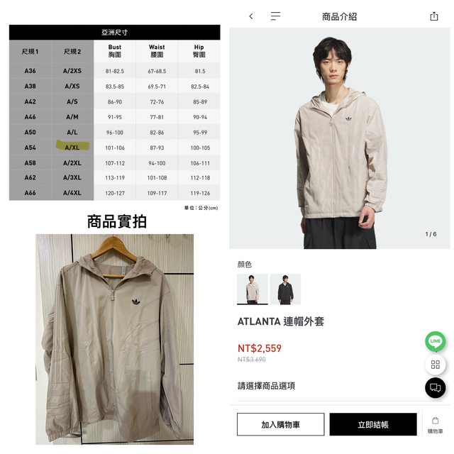 交易物品/金額/說明: 全新愛迪達外套兩件,官網購買,試穿尺寸不合但因併單其他商品無法退貨。