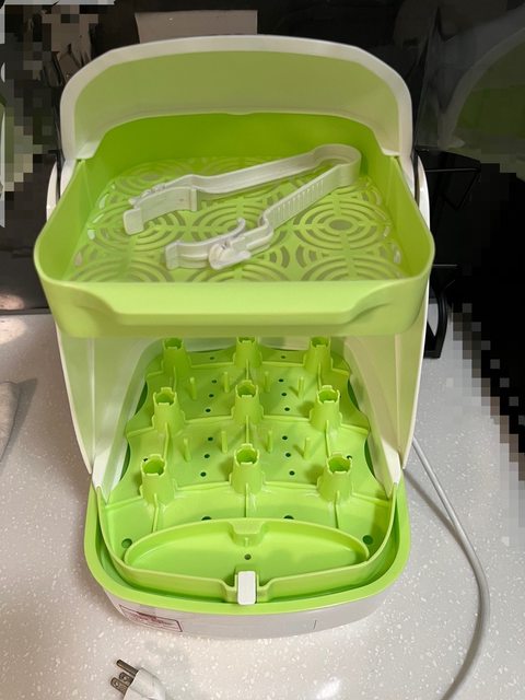 6. nac nac T1消毒鍋/售1000元 一手,功能皆正常, 量杯和奶瓶夾都還在, 會定期使用同品牌檸檬酸清潔水垢。