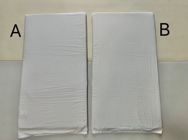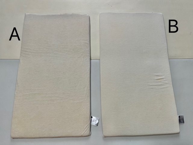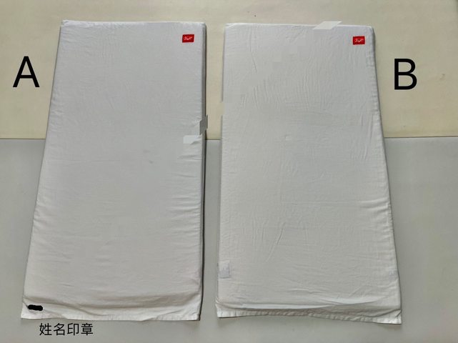 4.媽媽餵芬蘭箱床墊(已售出) A 大寶用比較久五成新, 且床套角落有蓋姓名印章/售150元 B 二寶少用八成新/售250元 兩個一起買300元 正面