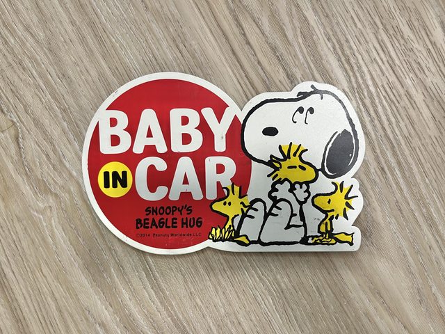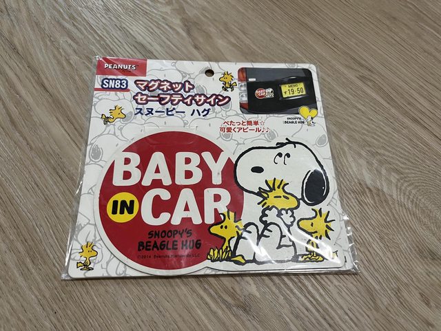 一手,磁鐵在上方邊緣那一排, 請先確認自己的車子能被磁鐵吸附。 13.史奴比Baby in car警示磁鐵/售50元