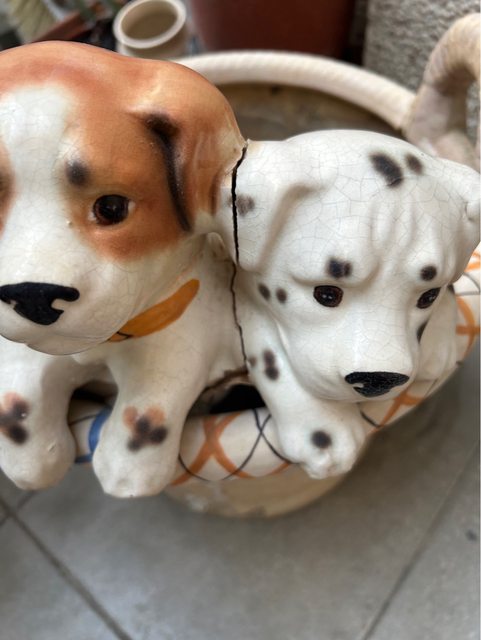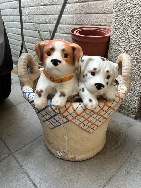 2.破掉的狗狗花盆 (有掉漆狀況) 大又重!