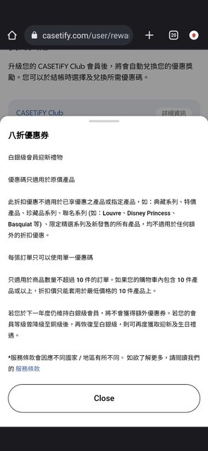 上個月買了一個新手機殼,有升級為白金會員,有八折優惠卷。