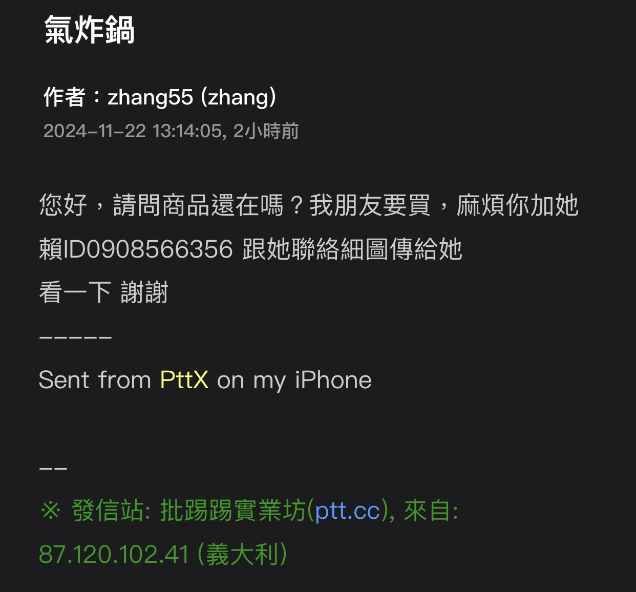 → Olivemew: 難怪我要回站內信都失敗,原來是詐騙 11/22 22:35