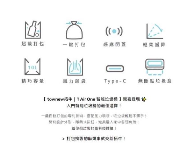 物品:全新拓牛智能垃圾桶,T Air One。包含專用垃圾袋8入(全新未拆封)垃圾桶全新