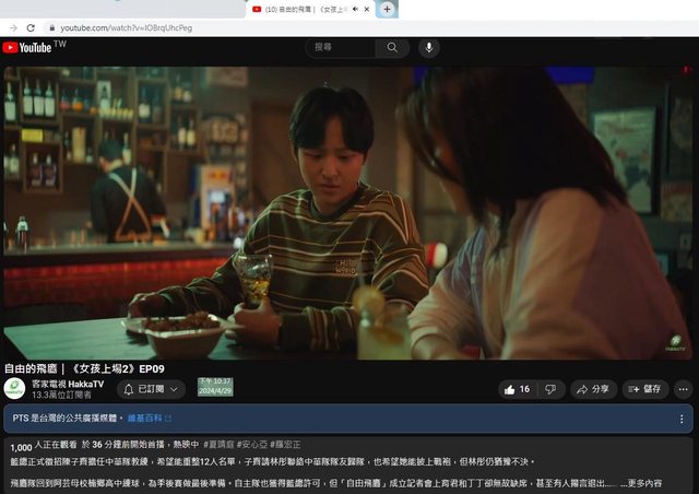 好,那附上昨晚第九集在YouTube直播時,即時收看人數滿一千人的截圖~