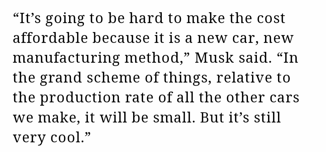 → hanchueh : 他是說跟其他特斯拉車比 產能會比較小 07/16 10:54