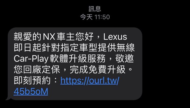 推 Lee7777 : 不要點簡訊裡的網址哦!那看起來像釣魚網站短網址 07/17 16:33