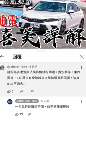 推 ymx3xc : 他就本田粉 開FK8,你不喜歡退訂就好. 07/24 21:53