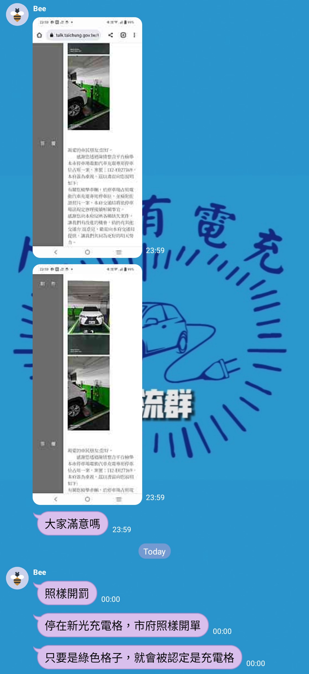 → hanchueh : 群組最新消息 連私人停車場佔用充電位都檢舉成功 07/26 17:10
