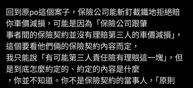 推 zivking : 而像本件價值減損的案例,太多雙方對金額無法達成共 08/02 17:12