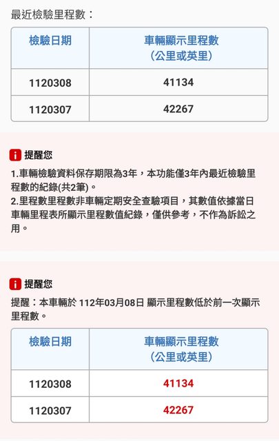 推 Nchun : 1.復駛要驗車2.重領要驗車3.換牌要驗車。里程可能是 08/04 07:51