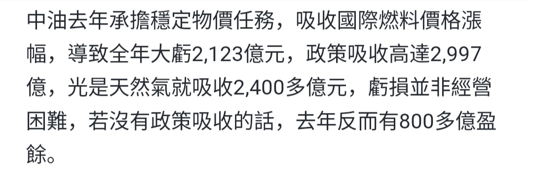推 A80211ab : 中油主要是便宜賣台電天然氣在虧的 08/09 22:23