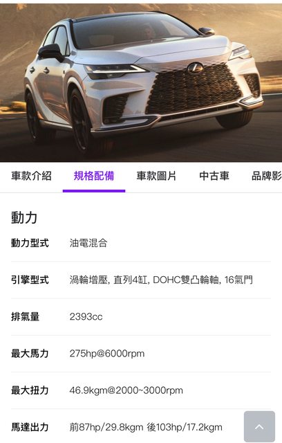 推 aaboutt : 原文寫錯,RX500h是370匹,原文少寫100匹。雖然不是 08/13 22:53