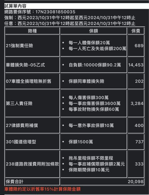 推 B9907143 : 今年保費長得很有感,新車第二年算上折舊,沒出險 08/18 08:45
