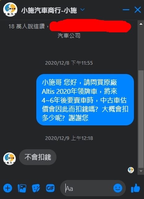 就想說問一下 二手車KOL 小施哥的意見(如上圖所示)