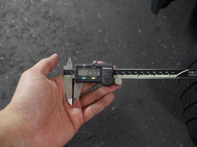 檢查輪胎表面-是我鬆懈了,2.59mm的磨耗,已經接近到安全線 (1.6mm 為輪胎安全線法