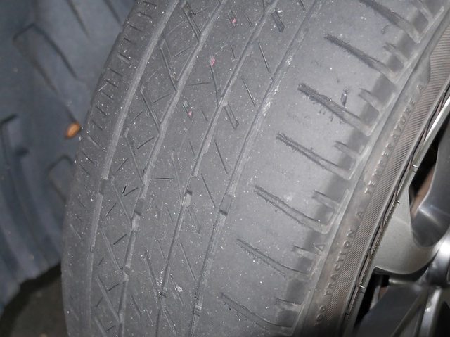 對照當時全新的輪胎照片,輪胎上有一些胎紋已經磨掉,排水性不比全新胎那麼優異