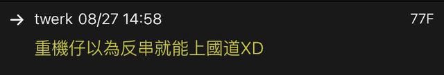 → kcey : 我覺得有更惡劣的 他們爭取上國道 但自己不敢上去 08/27 17:32