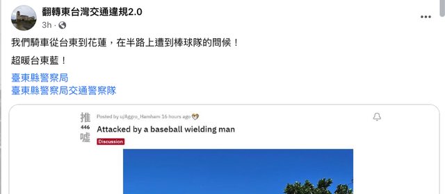 → aaaaspasia : 台灣管的到Reddit 喔,花蓮警察真棒 08/28 18:21