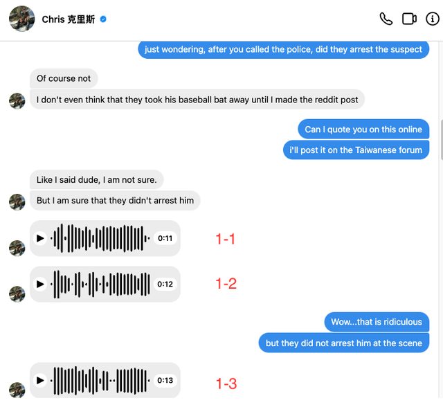Chris 女友(2-13):然後警察昨天還前天有電話來,希望我們會台東做筆錄,因為他們