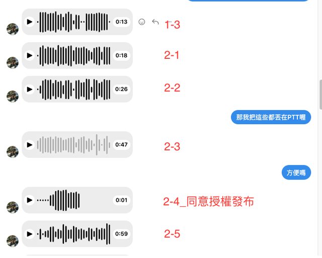 我(文字): 那我把這些都丟在PTT喔,方便嗎