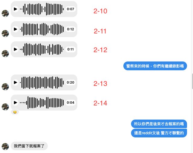 我:所以你們是後來才去報案的嗎,還是reddit文後 警方才聯繫的