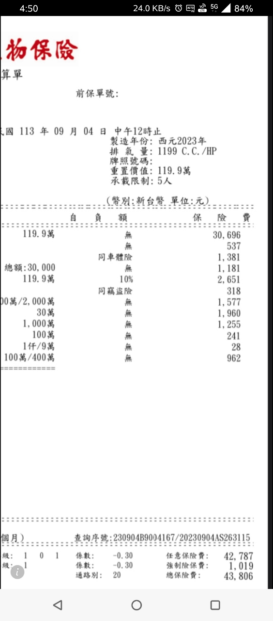 → pure2249 : 了,領牌的時候業務會先保強制險,你實際保的時候, 09/05 07:32