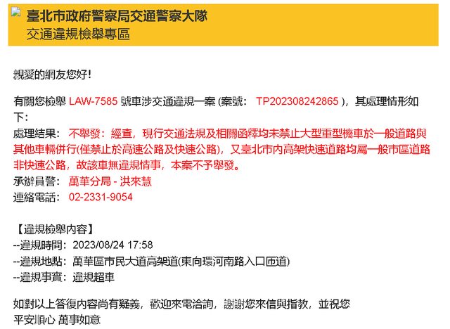 噓 ericekin : 北市警察滿○○的,明顯違規都不開 09/09 09:47