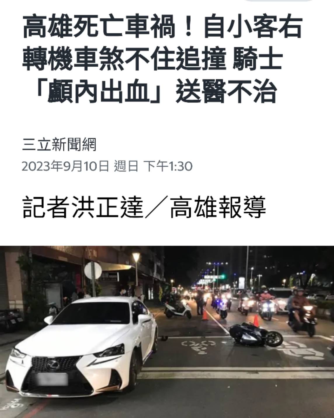 → orzzz : 這篇報廠牌、車牌不碼。4小時後隔壁縣市Lexus死人就 09/10 22:50