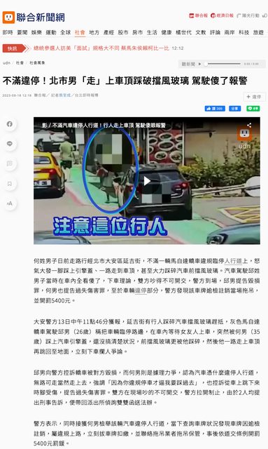 → fd3sfc3sae86: 衡報導行人的毀損行為,違停都寫了,毀損就是毀損, 09/20 13:02
