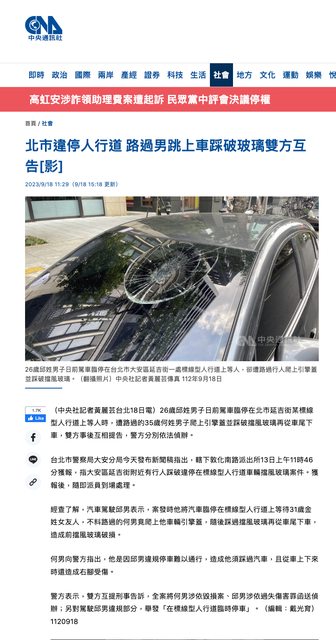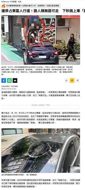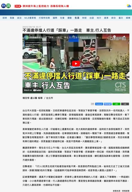 → sing60905 : 有網路媒體下標說行人扯 台灣違停確實是不扯到處有 09/19 15:40