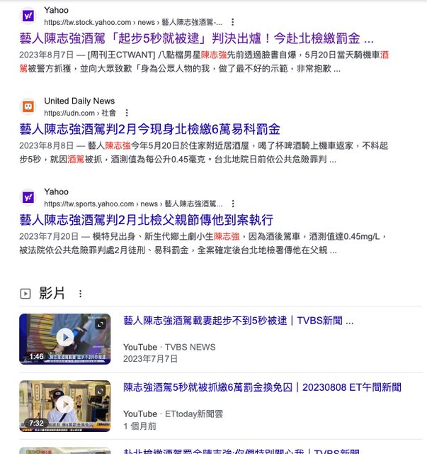 2. 自由時報– 內文「沒提到5月剛酒駕」,相關新聞有