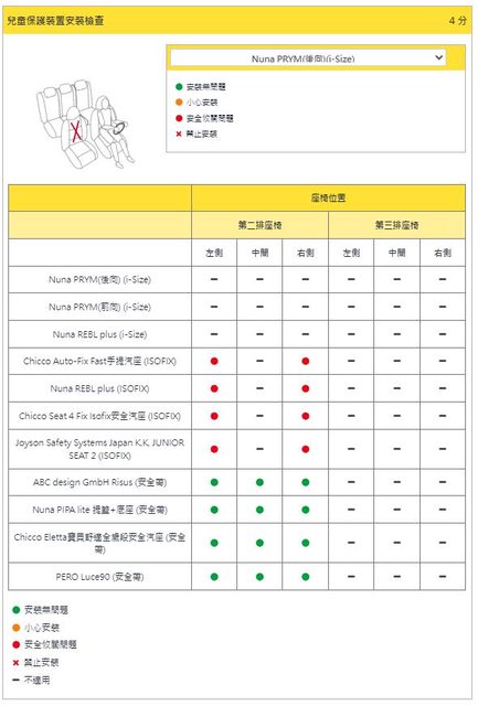 → anan790410 : 得到滿分 最後結論寫另該車型未具備可安裝i-Size兒 09/26 12:02