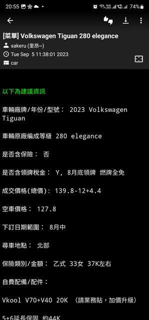 → k85564 : tiguan現在問都折10萬起跳 09/27 10:29