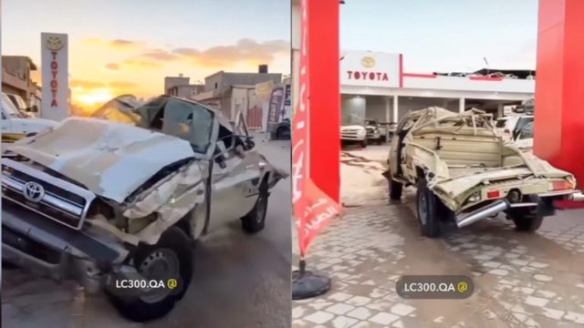 在正常人的認知中,這樣幾乎面目全非的車絕對不需要維修而是報廢,但是Land Cruiser
