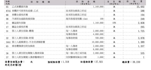 推 enthusiastic: 第三人財損降到最低;乘客體傷、駕駛人傷害刪掉以 10/15 08:09