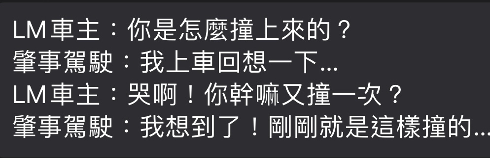 推 xalexsnowman: 反正保險都要賠,再撞一次好了 10/24 08:00