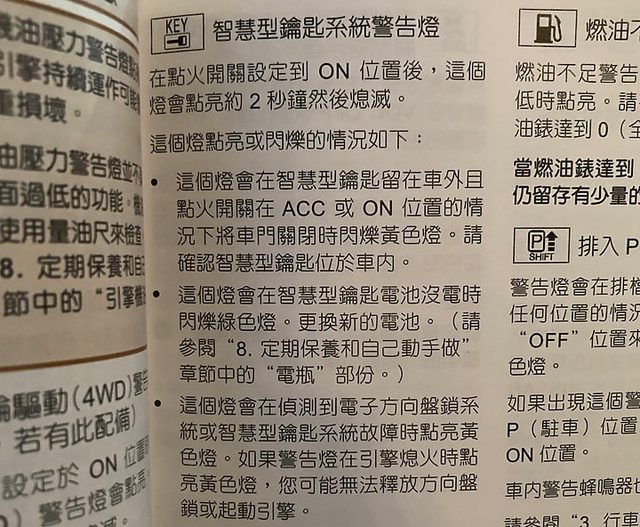 然後年初智慧鑰匙警告燈亮了