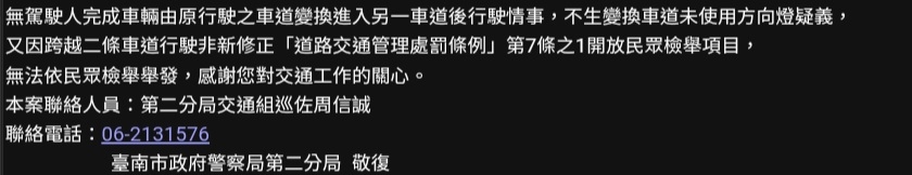 推 yangyy2 : 這種跨線未打方向燈最容易被檢舉成功 10/30 08:15