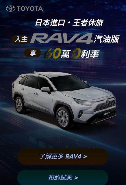 最近廣告打很大,RAV4汽油到2023年11月底,60萬30期零利率。(連開車聽廣播都有在廣