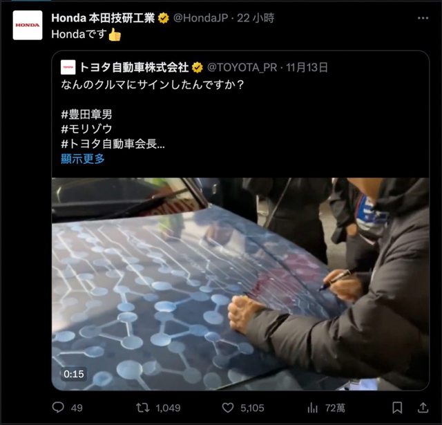 這次豐田章男則是來到CR-V FCEV攤位上簽名留念,影片還獲得Honda原廠轉推。(圖片來