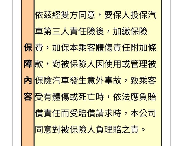 推 EPIRB406 : 推這篇,我家人也有用到乘客險,強制險各項目有上限 11/28 22:45