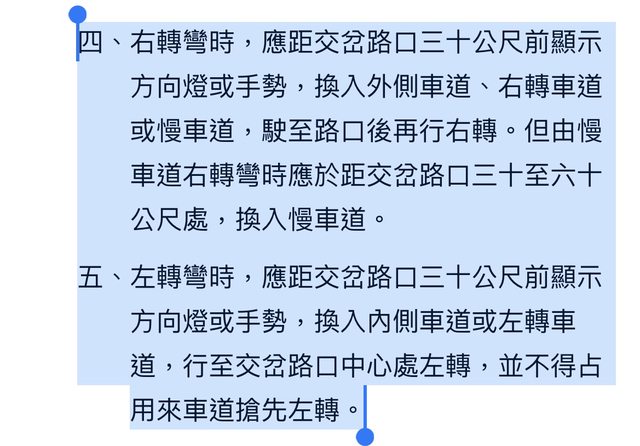推 alwang : 法規30公尺 鄉民:菜鳥不會右轉 30公尺前才打燈 12/01 16:45