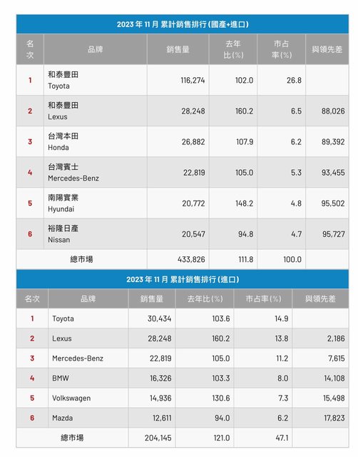 推 JuanWang : 阿肥這是交車統計,進口車要看母廠給台灣多少車 12/01 18:56