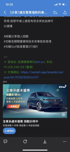 → bohla : 我之前7.5代gti 開3年,小問題發生幾次,大問題沒12/03 03:06