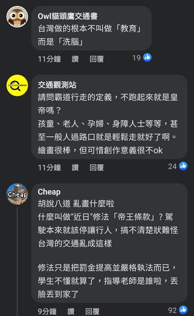 → ksk0516 : 大概坐家長的車整天耳濡目染罵行人 12/12 12:07