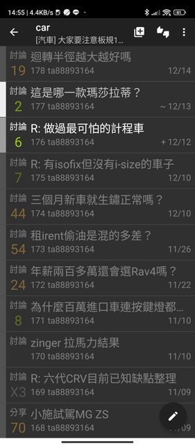 → zzahoward : 結論說個#不下250萬休旅車就好了 12/14 16:02